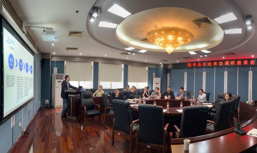 10月9日,医学总务处处长叶波一行9人来访调研,总务后勤处党委书记、处长何流清主持召开座谈会,相关单位负责人参加了会议。